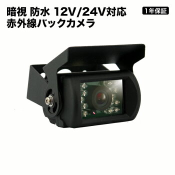 赤外線12V・24V対応バックカメラ 暗視OK ・トラック・キャンピングカーの後方確認に! 12Vから24Vまで使用できるので、トラックやキャンピングカーなど、 大型車にも取り付け可能です。