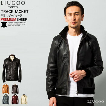 LIUGOO 本革 レザートラックジャケット ジャージ メンズ リューグー TRK01A レザージャケット ライダースジャケット 革ジャン 皮ジャン 本皮ジャンパー ハイネック イタリアンカラー シングル 海外発送可 AP