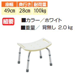 ・座面幅:幅49×奥行28cm 全幅:49×42cm ・座面高:34〜44cm ・重量:2.0kg ・組立て:必要 ・耐荷重:100kg ・カラー:ホワイト ・メーカー:ミキ