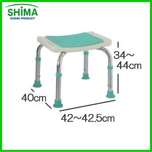 入浴用品、入浴関連商品 お風呂関連商品 特定福祉用具 特定介護予防福祉用具 入浴用イス、シャワーチェア、バスベンチ、バススツール 商品名:シャワーチェア楽湯ミニ背無しタイプ ・コンパクトタイプ ・座面にシャワー受け付き ・材質:本体 アルミ(アルマイト加工) ・パッド EVA ・座部 PE ・サイズ:幅42〜42.5×奥行40 ・座面高:34〜44cm ・高さ調節:5段階調節(ピッチサイズ約2.5cm) ・座面サイズ:幅40×27.5cm ・使用者面耐荷量:100kg ・重量:約1.7kg ・組立て:必要 ・メーカー:島製作所