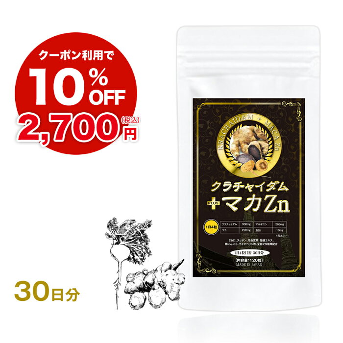 商品名 クラチャイダム+マカZn30日分 商品説明 クラチャイダムをはじめマカ、亜鉛、スッポン、冬虫夏草、牡蠣エキス、黒にんにく等 世界が注目する9つの健康成分を配合。