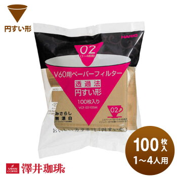 【澤井珈琲】ハリオ式珈琲 V60用ペーパーフィルター(みさらし)[VCF-02-100M] 1-4人用