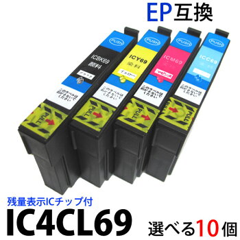 IC69 対応 選べる10個セット(ICBK69 ICC69 ICM69 ICY69) 新品 EPSON エプソン 互換インク残量表示ICチップ付 PX-045A PX-105 PX-405A PX-435A PX-505F PX-535F 汎用インク 印刷