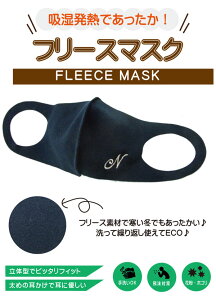 【10枚までネコポス便可】フリースマスク 1枚 【イニシャル刺しゅう】【書体1】冬用!吸湿発熱であたたかい!スワロフスキー マスク 洗って繰り返し使える FASHION MASK 韓国 ファッションマスク 立体 軽い 伸びる 男女兼用 大人用 花粉 ウイルス 暖かい