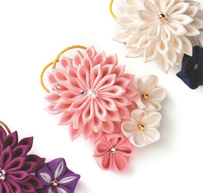 正絹生地を使用したつまみ細工が新登場! しなやかで光沢があり、見た目がとても上等な仕上がりになります。