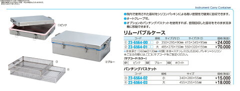 リムーバブルケース用バスケット 小 340X280X55MM品番 23-6564-021入り 医療機器対象外 手術室・中央材料室 滅菌コンテナー・カスト 定価\15000 JAN ●定価¥15,000円(税別)●商品説明●院内で使用された器材をシリコンパッキンによる高い密閉性で確実に回収できます。