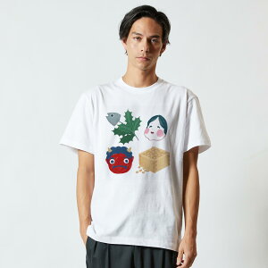 tシャツ メンズ 半袖 ホワイト グレー デザイン XS S M L XL 2XL Tシャツ ティーシャツ T shirt 015786 節分 豆まき 鬼